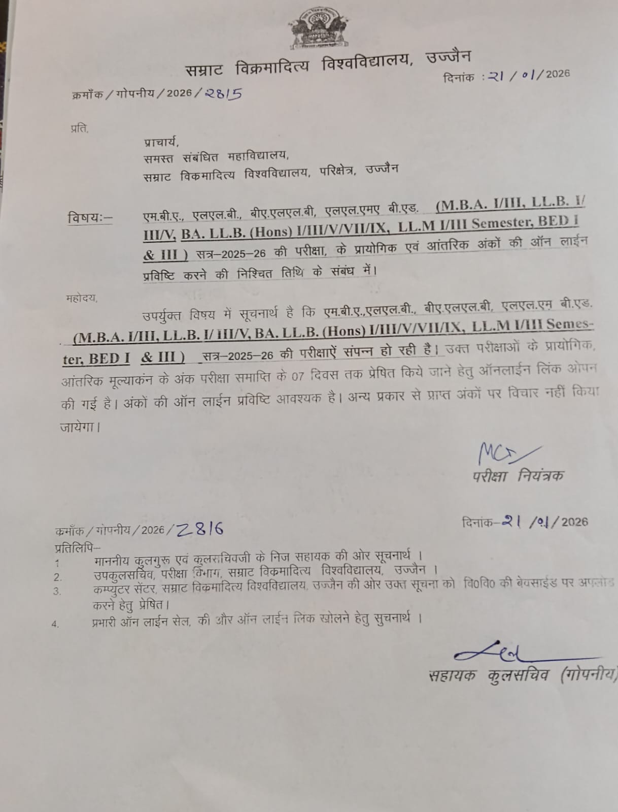 Online marks submission for MBA, LLB, BALLB, LLM exam 2025-26