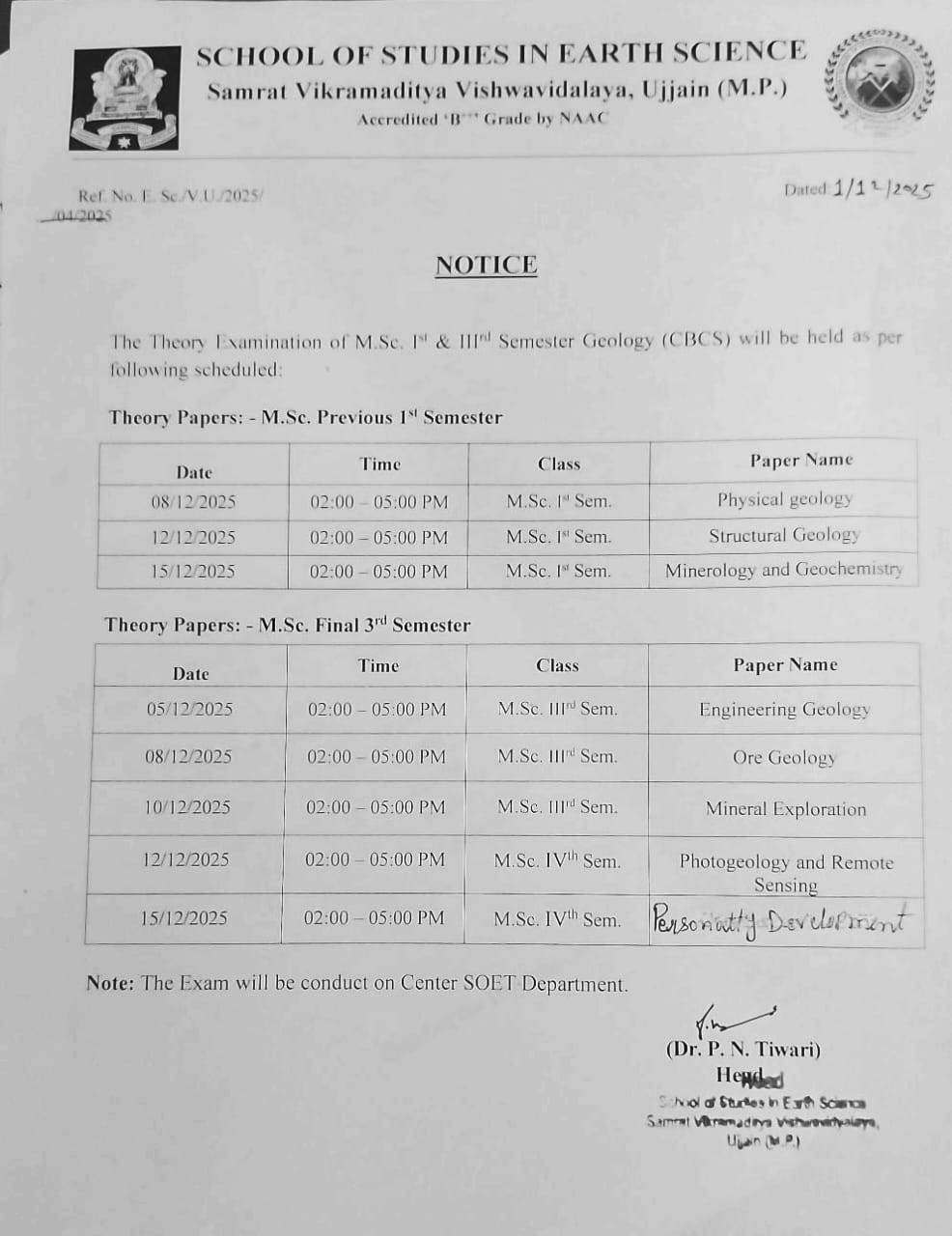 M.Sc.I & III Sem Exam Earth Sc. 2025