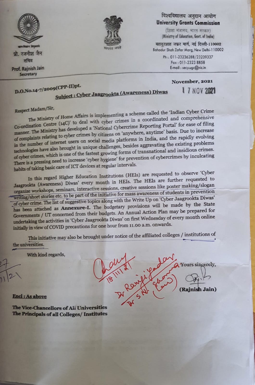 To all colleges for organizing Cyber Jagrookta(Awareness) Diwas