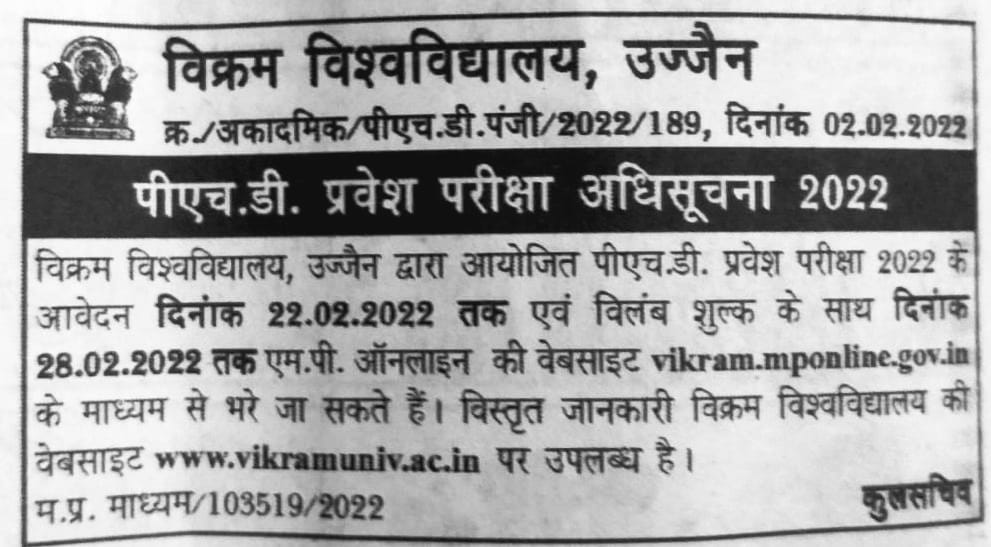 Ph.D. Entrance Examination Notification-2022