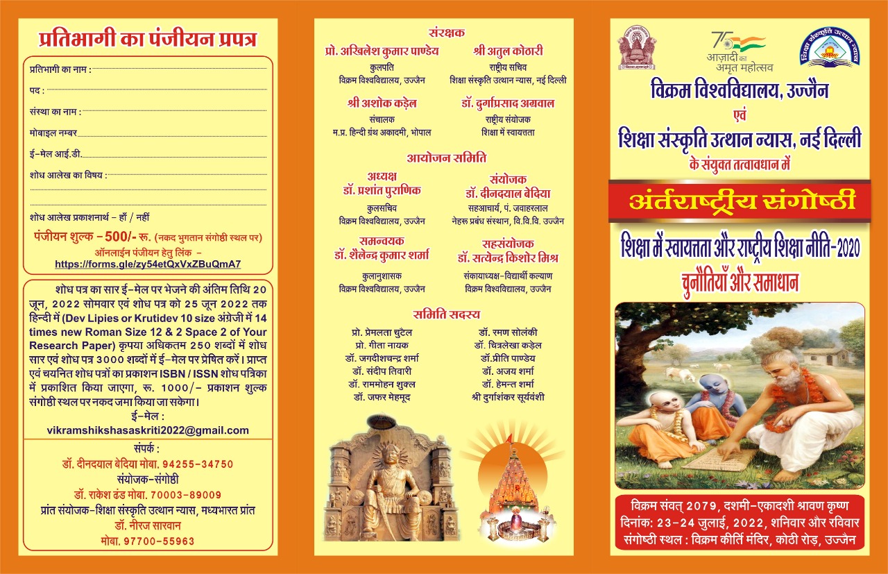 अंतरराष्ट्रीय संगोष्ठी का आयोजन-शिक्षा में स्वायत्तता एवं राष्ट्रीय शिक्षा नीति-२०२० (२३-२४, जुलाई २०२२)