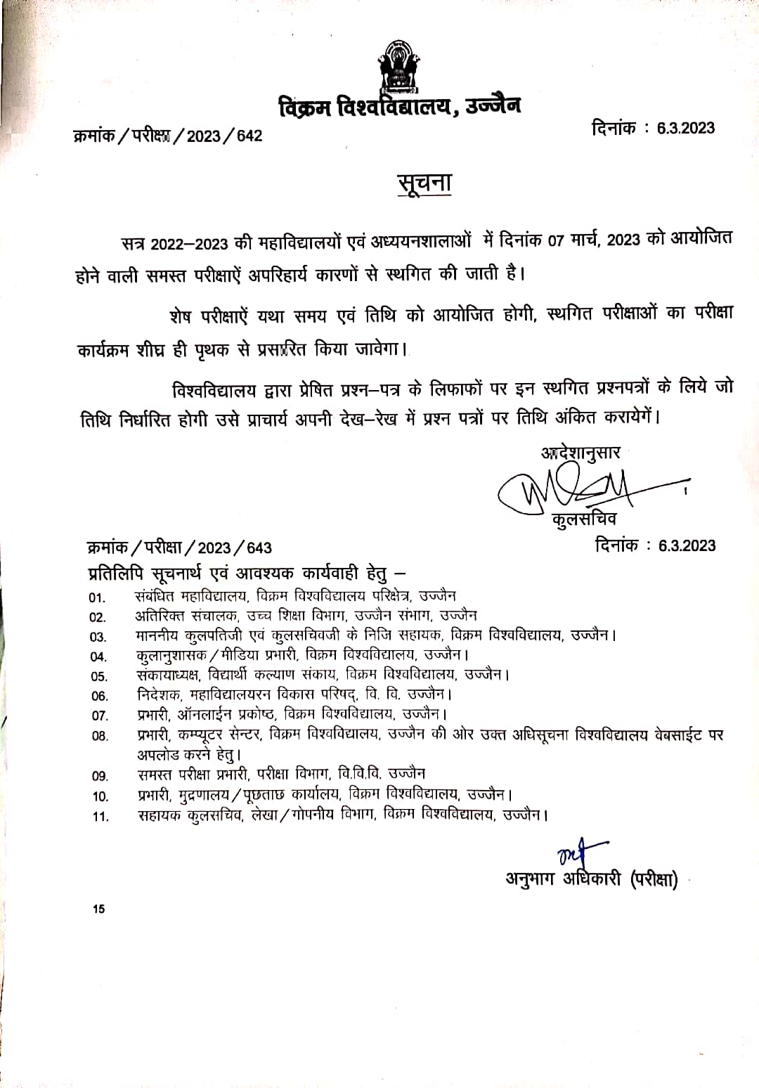All Exams on 7 march 2023 will be postponed