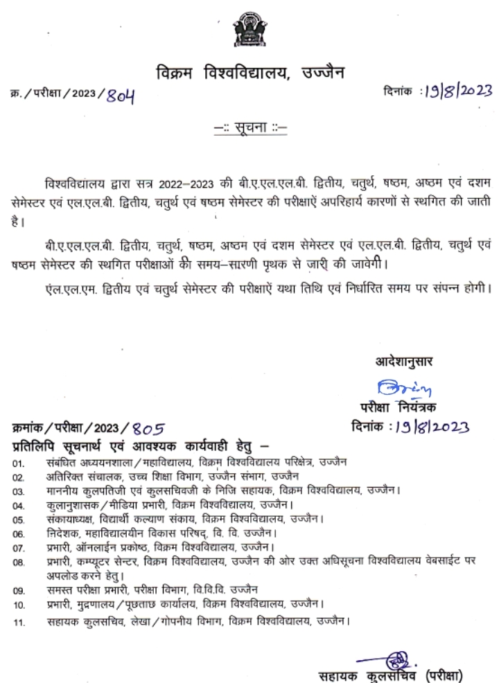 Exam Postponed - BALLB, II, IV, VI, VIII, X sem & LLB II, IV, VI sem 2022-23