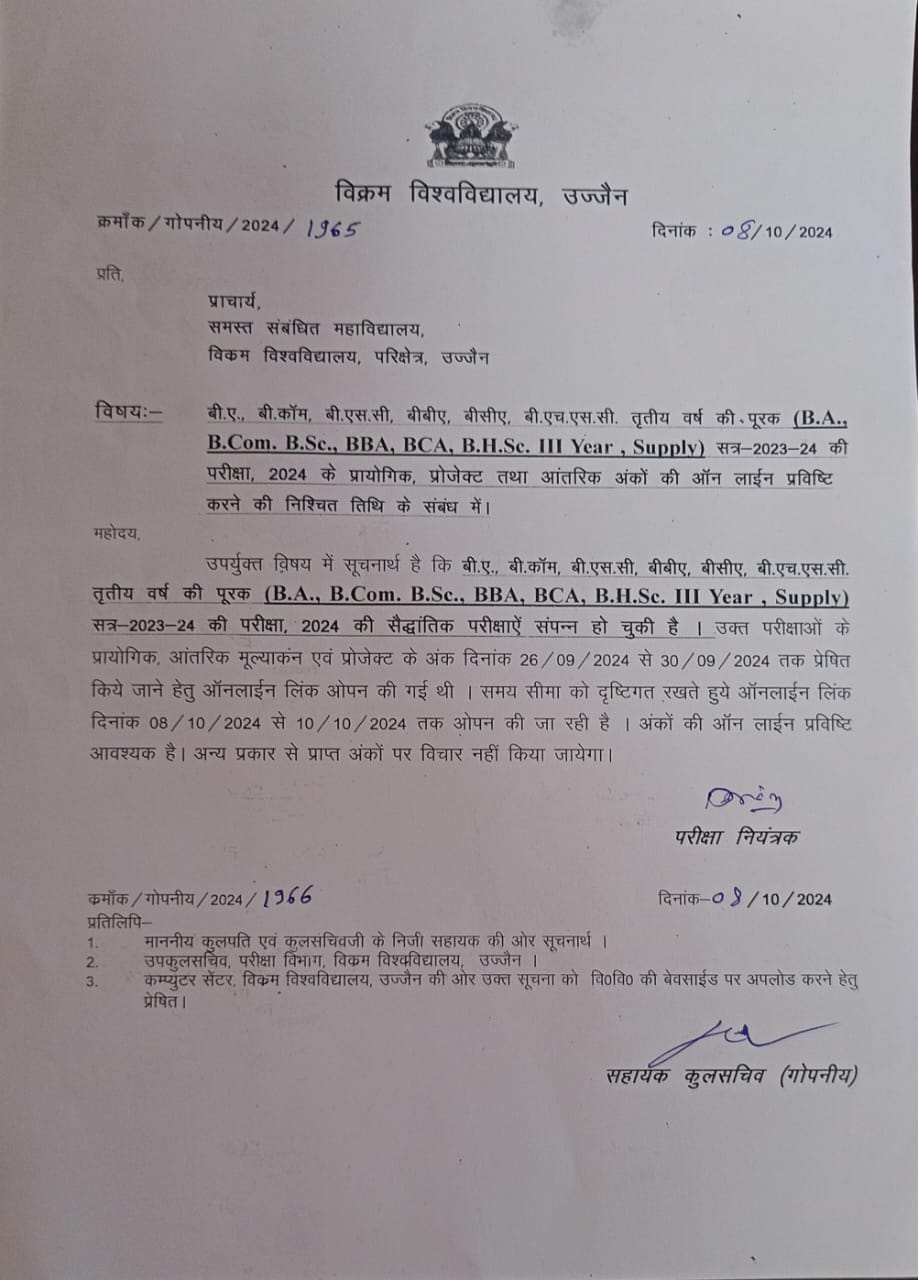 Online marks submission of Practical, Internal & Project for Suppl. Annual exam UG III Yr. 2023-24