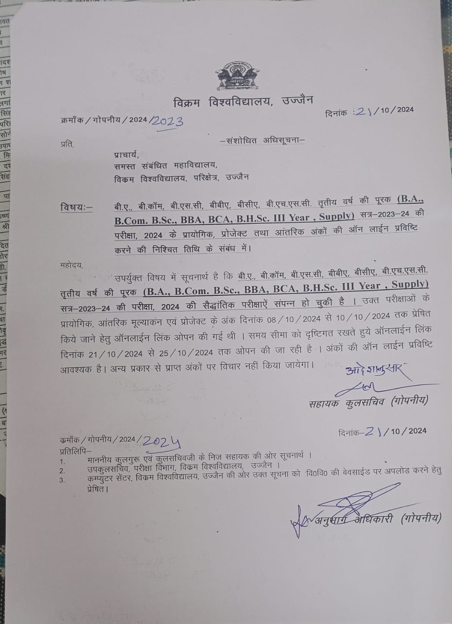 Online marks submission of Practical, internal, Project for UG III Yr. Suppl.exam 2023-24