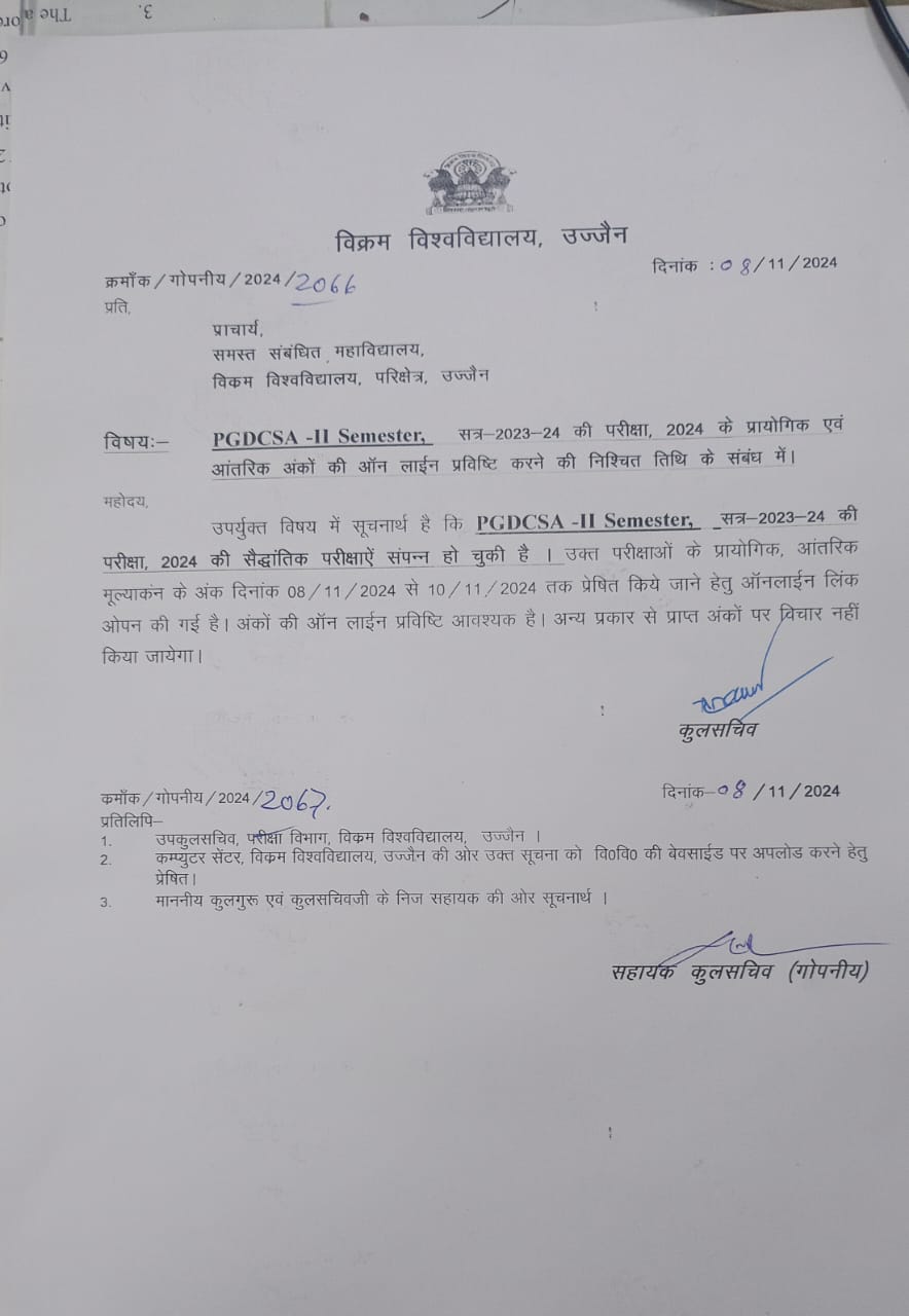 Online marks submission for internal and practical for PGDCSA-II sem 2023-24