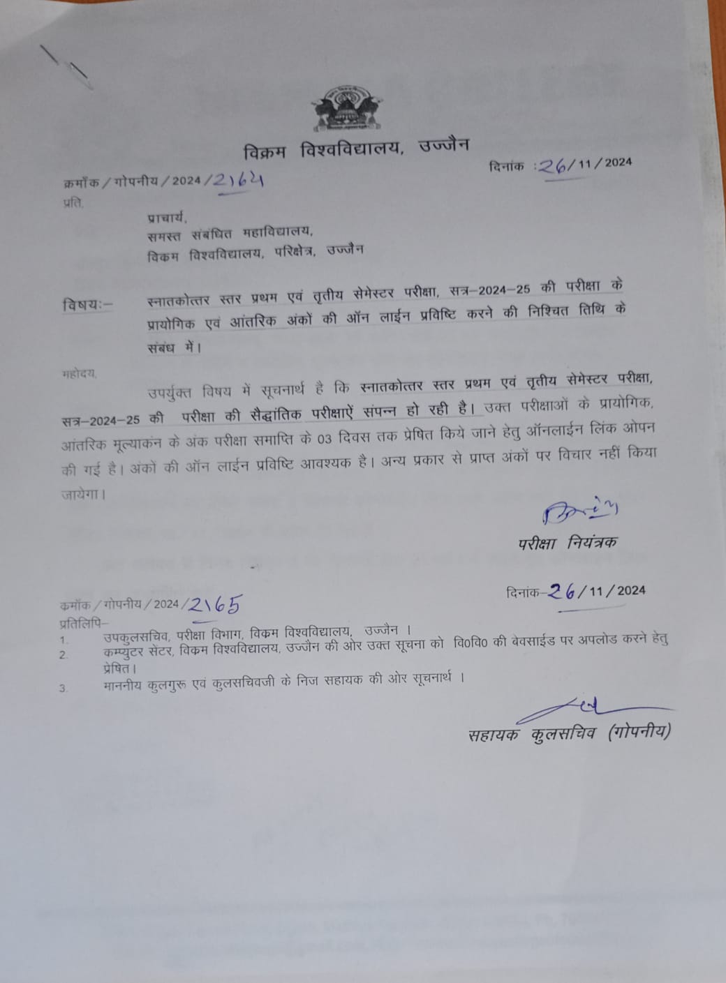 Online marks submission of Practical and internal marks for PG exam 2024-25