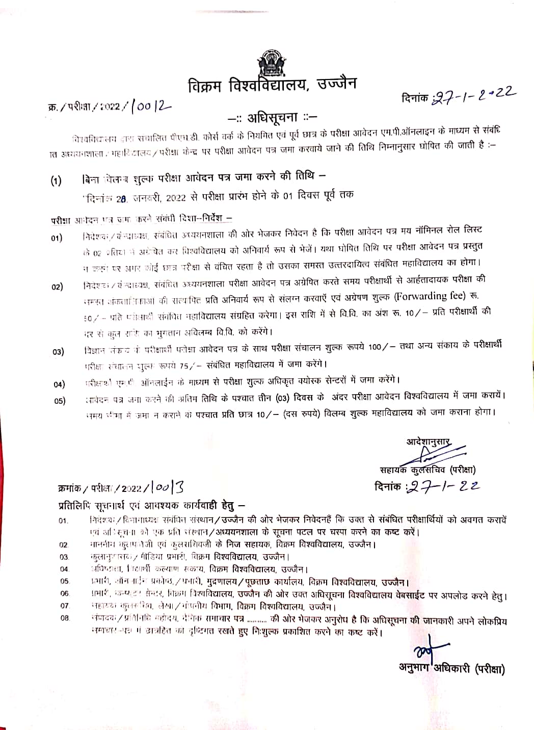 Online Examination form submission for Ph.D.Coursework exam