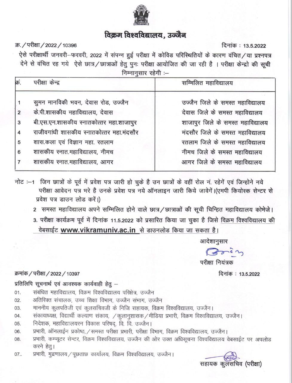Re-exam centre-list for left-out students due to COVID-19