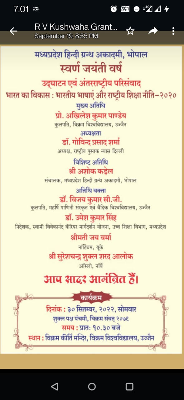 म प्र हिंदी ग्रंथ अकादमी, भोपाल स्वर्ण जयंती समापन समारोह एवं अंतर्राष्ट्रीय परिसंवाद