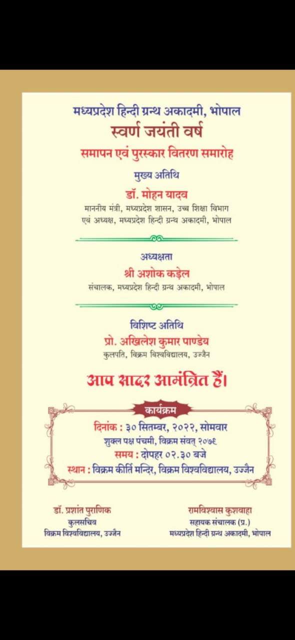 म प्र हिंदी ग्रंथ अकादमी, भोपाल स्वर्ण जयंती समापन समारोह
