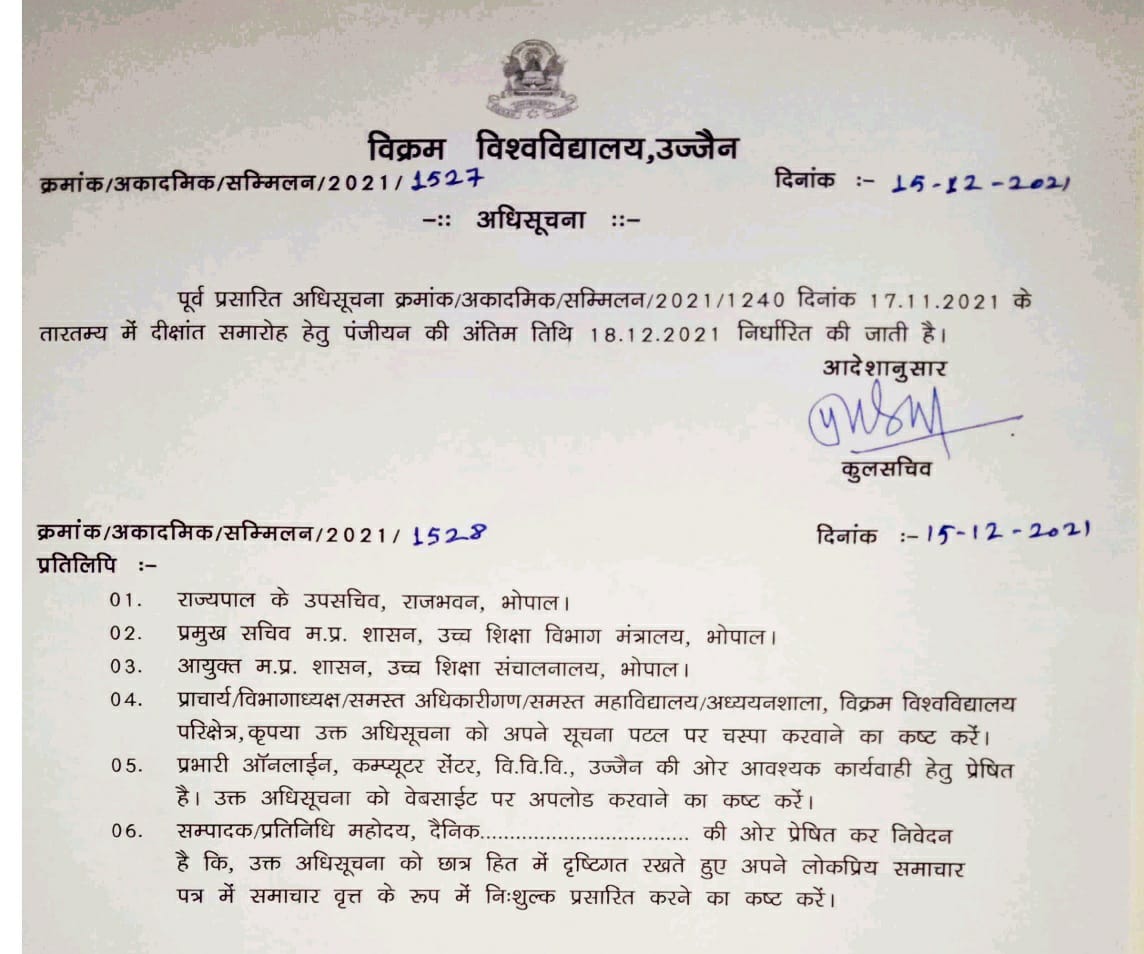 Regarding last date of registration for 25th Convocation on 22 December 2021