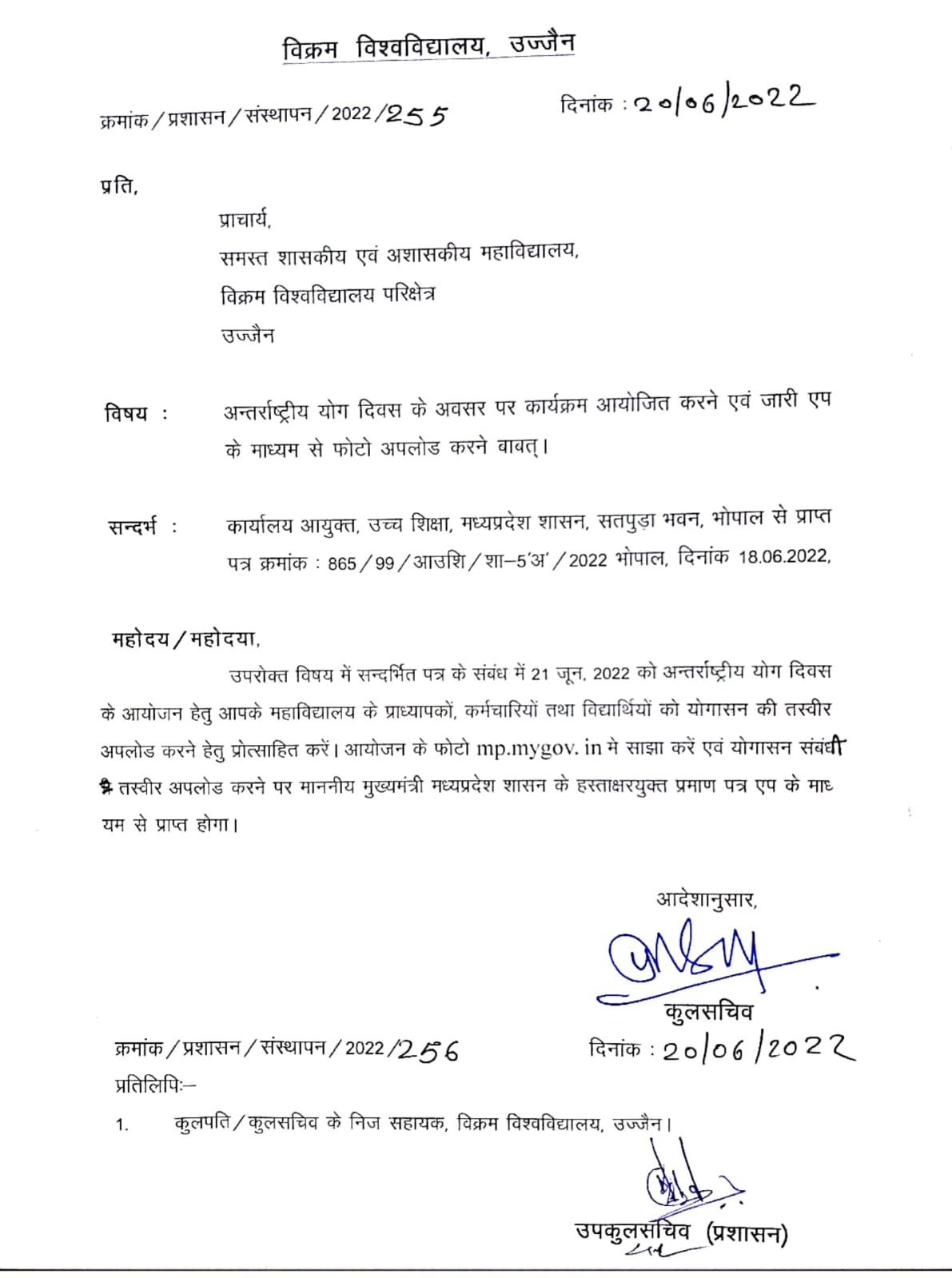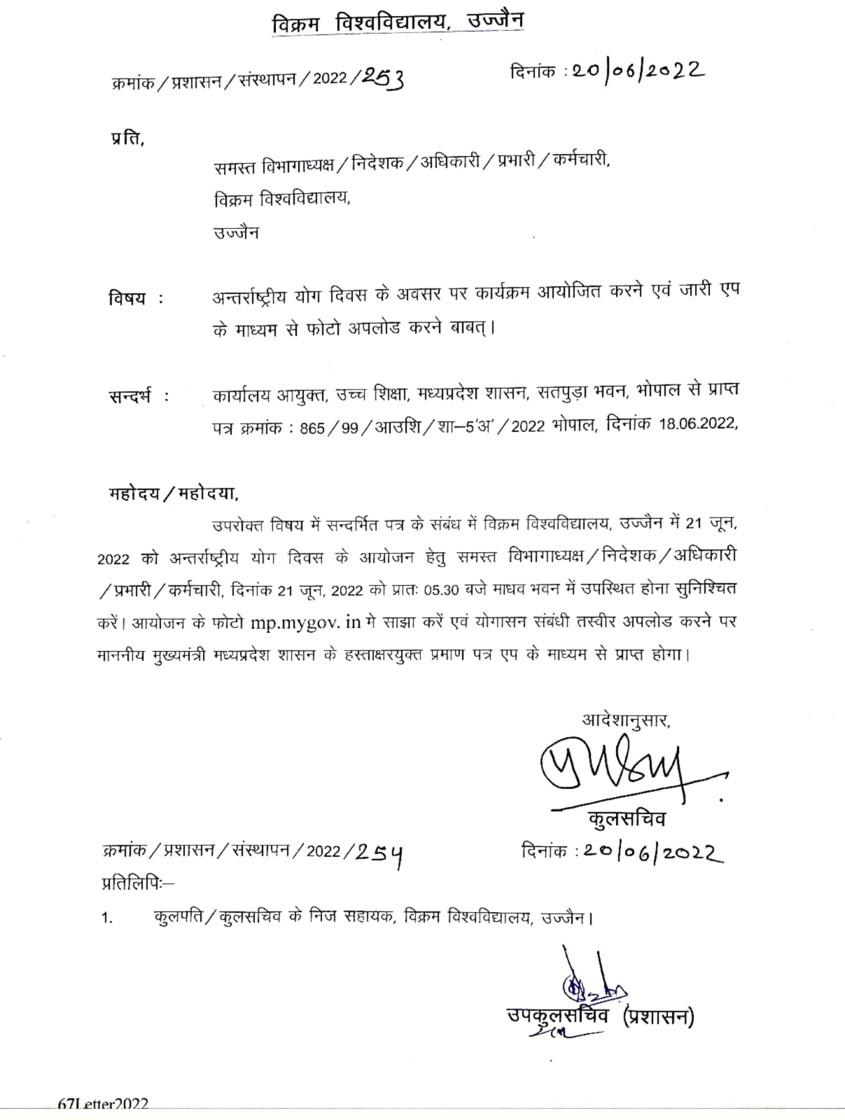 अन्तर्राष्ट्रीय योग दिवस के अवसर पर कार्यक्रम आयोजित करने के सम्बन्ध में