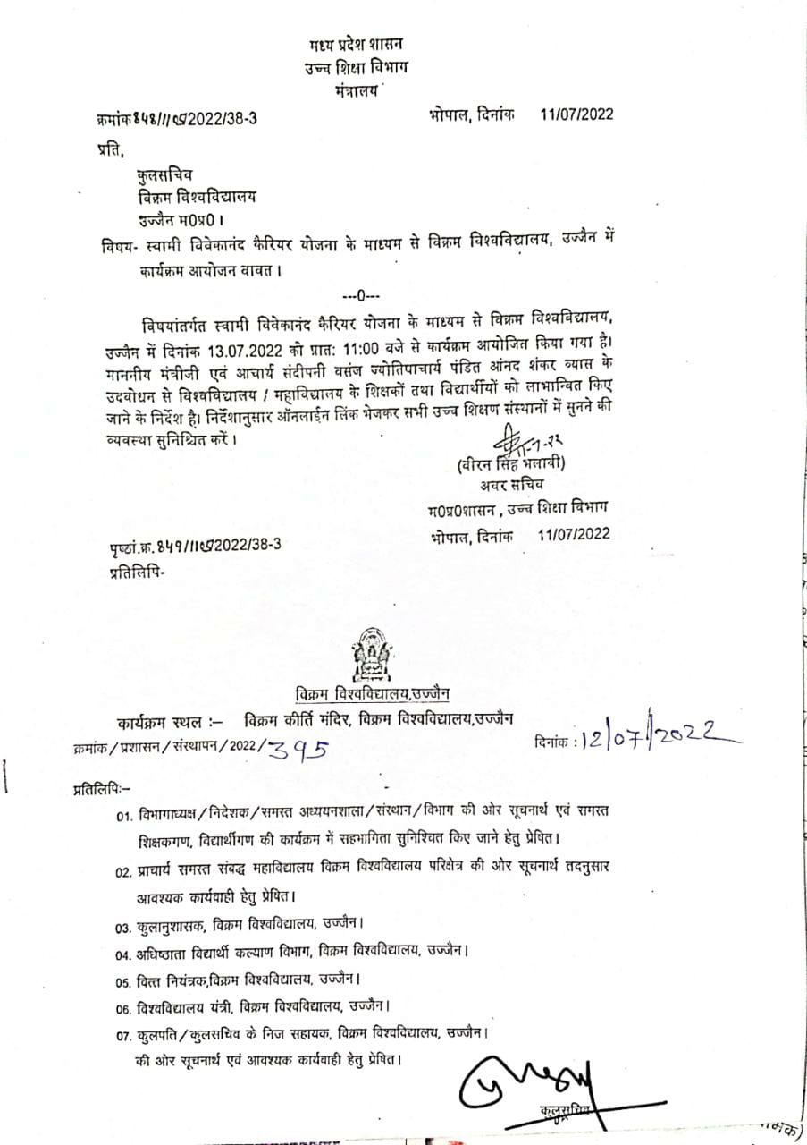 स्वामी विवेकानंद कैरियर योजना के माध्यम से विक्रम विश्विद्यालय उज्जैन में कार्यक्रम का आयोजन