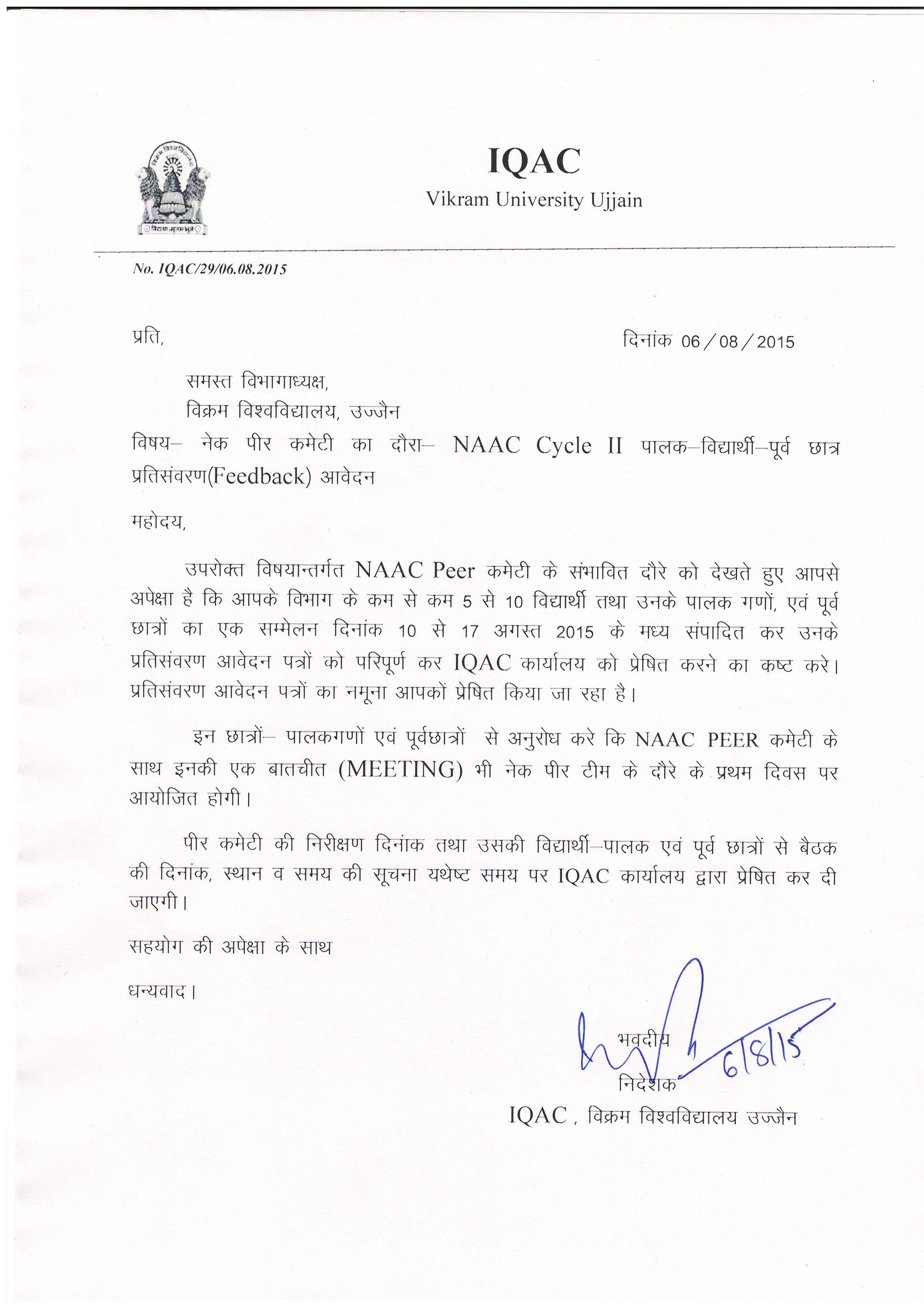 - Letter to all HoD/Officers for Evaluation Report dated 25/09/2018