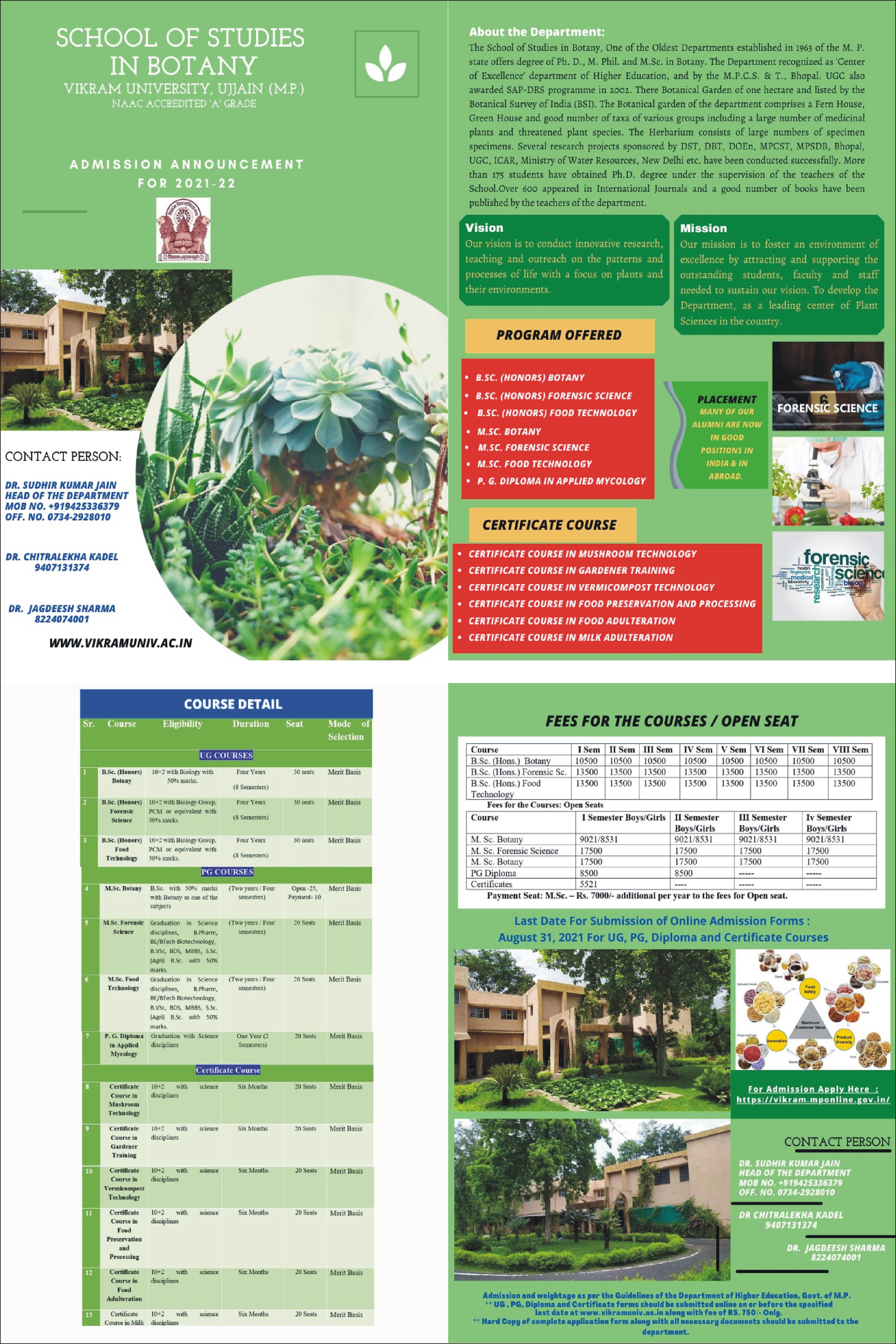 | School of Studies in Agriculture | Dr. Rajesh Tailor | 0734-2511317 | ||