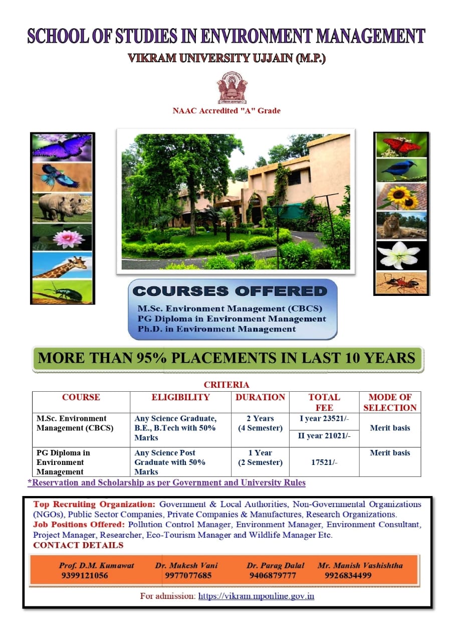 | School of Studies in Environment Management | Dr. D.M. Kumawat | 0734-2511672 | ||