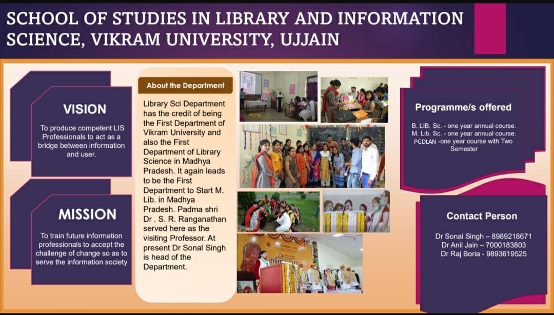 | School of Studies in Library and Information Science | Dr. Raj Boria | 9893619525 | 0734-2928038 | This email address is being protected from spambots. You need JavaScript enabled to view it. |
