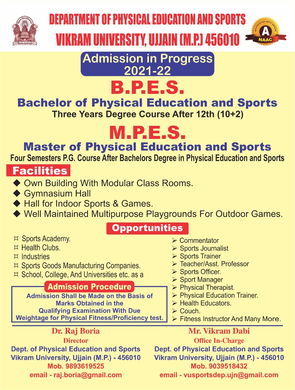 | School of Studies in Physical Education and Sports | Dr. Virendra Chaware | This email address is being protected from spambots. You need JavaScript enabled to view it. | ||