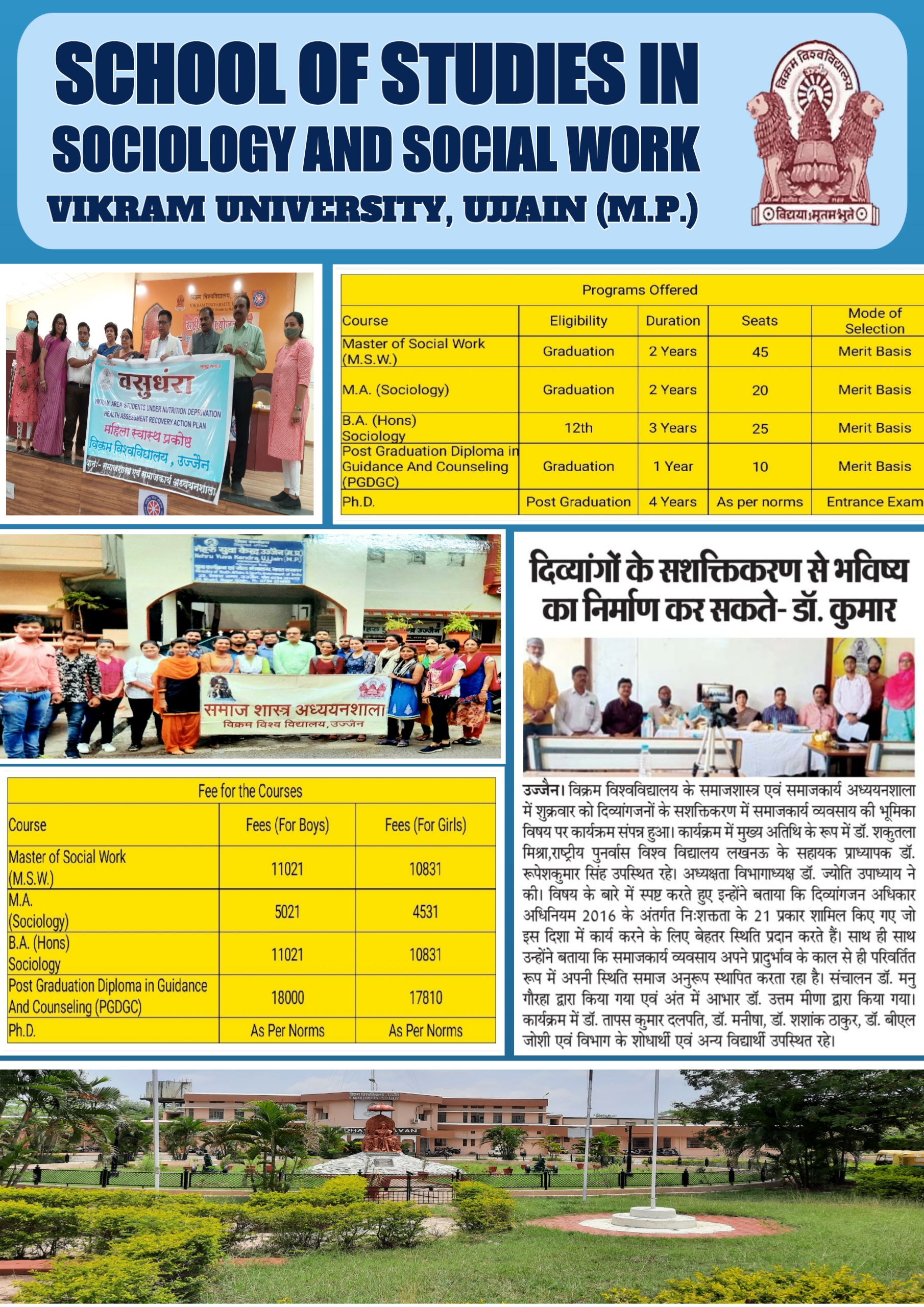 School of Studies in Sociology : 0734-2519920