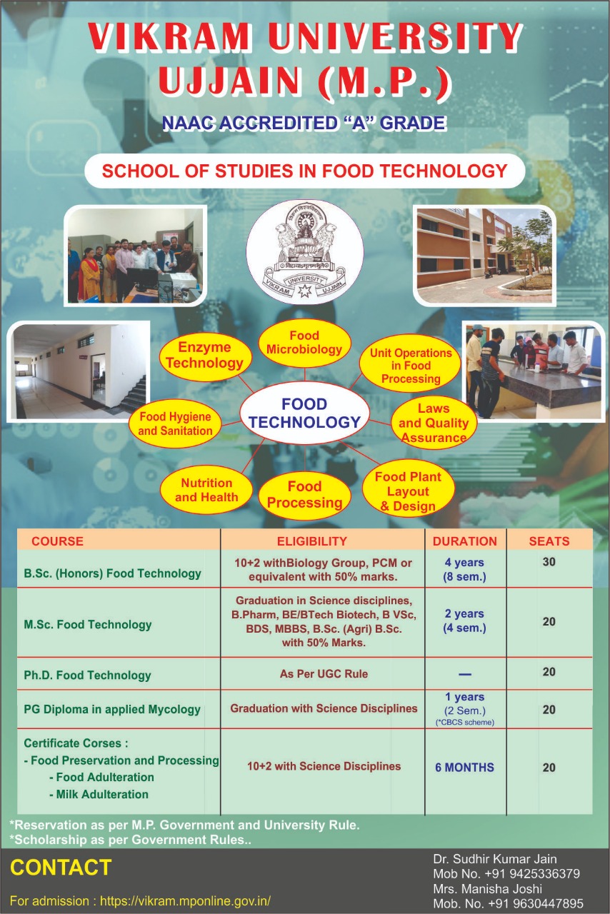 | School of Studies in Food Technology | 0734-2928012 | |||